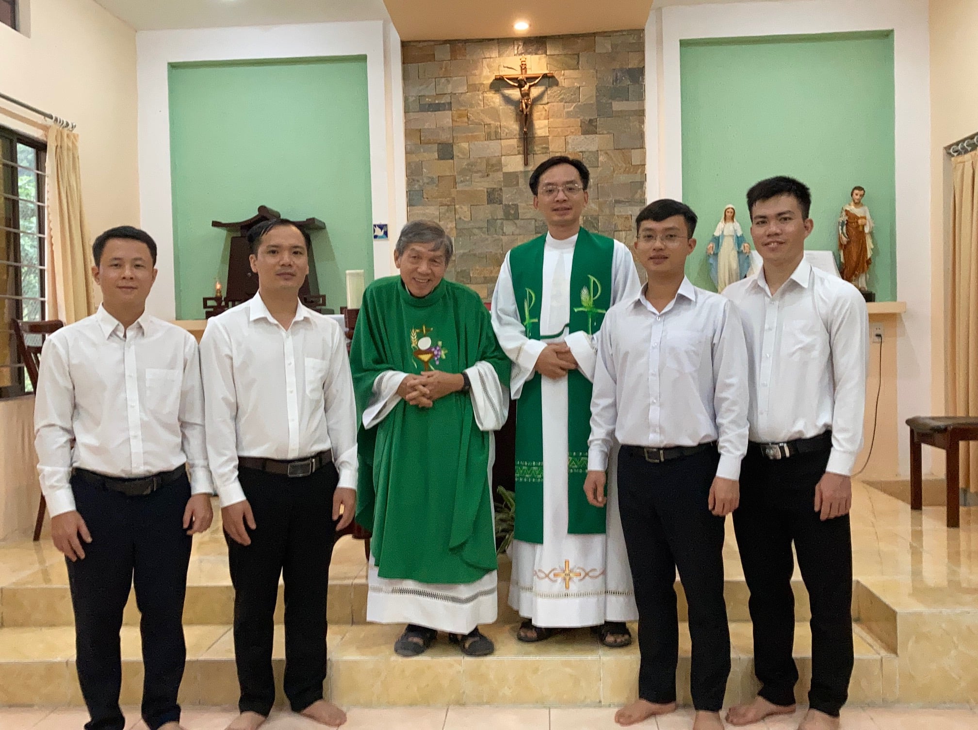 Từ trái qua: Biện Công, Văn Quế, Cha Trinh, Cha Hoàng, Hoàng Sơn, Huy Chất